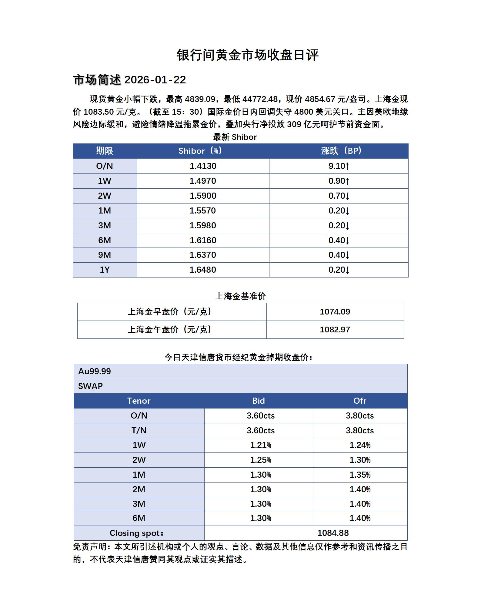 2026-1-22黄金掉期