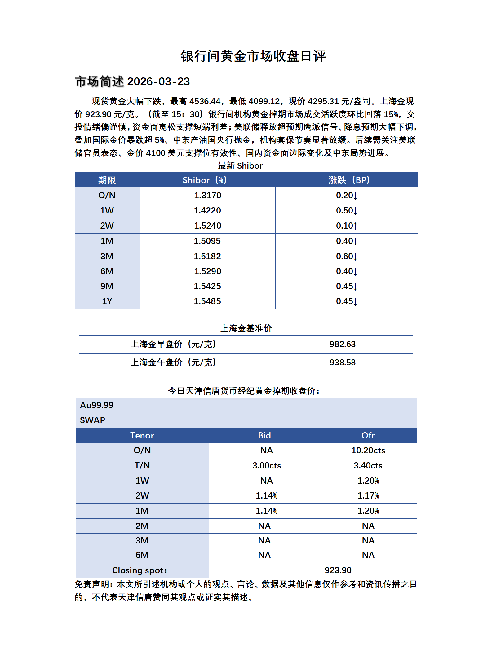 2026-03-23黄金掉期